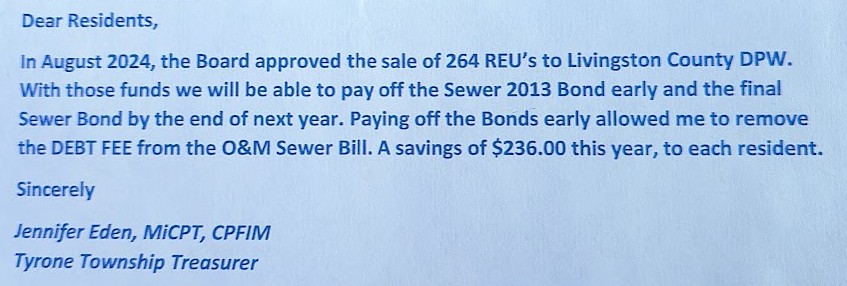 approximately 70% of the current sewer system users. To those township residents